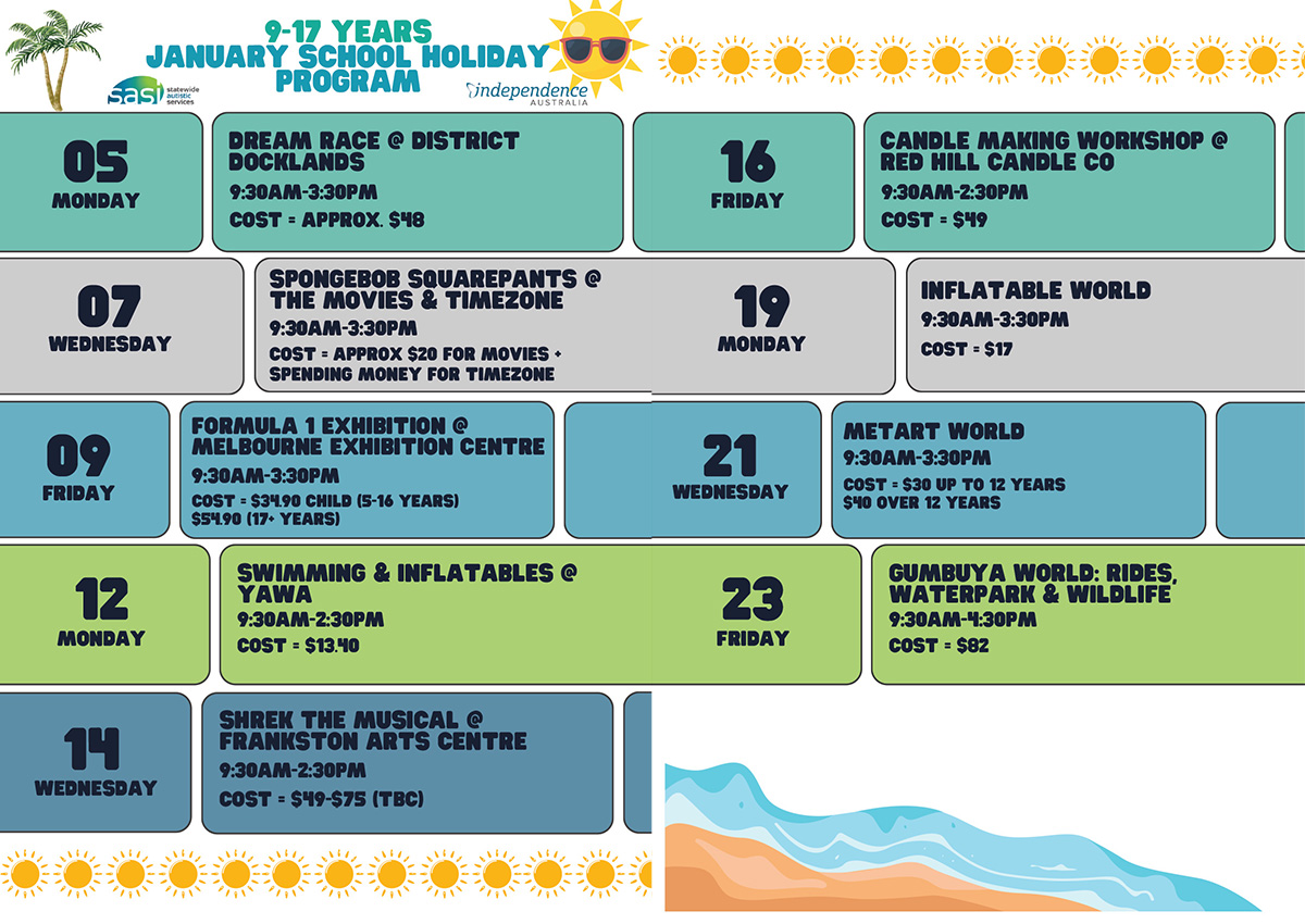 SASI is running an action-packed Holiday Program for under 18s and over 18s, loaded with fun activities, new experiences and plenty of chances to make memories with friends.